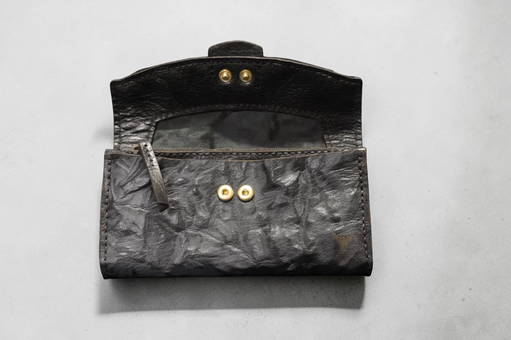 Spacious clutch/ladies wallet- for your everyday needs. Great as a stand alone clutch for evenings out or a quick luncheon with a friends. It’s also fantastic to store it in your favorite tote or hand bag as a wallet. There’s plenty of room to fit all of your essentials in here. Chapstic/lipstick, phone or glasses, cash, cards, change, receipts, and more. Front zipper pouch for change, 3 storage pouches for cash or bits and bobs, card holder divider with 6 spaces, and a snap closure. *This is a rare, limited edition goat skin leather. It is soft, thin and has a smooth, yet textured finish. Get it while it’s still available.