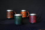Turn your favorite canning jar into a mug with this hand-sewn, hand-dyed leather wrap. Choose from 5 unique laser etched designs.