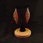 Beautiful red feather earrings with smaller, tan accent "friend"